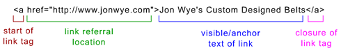 در تصویر بالا کلمه ی “Jon Wye’s Custom Designed Belts” به ان لینک داده شده است.